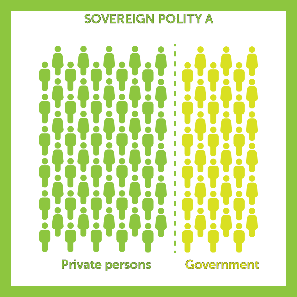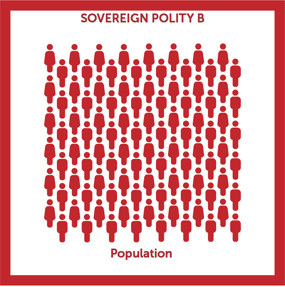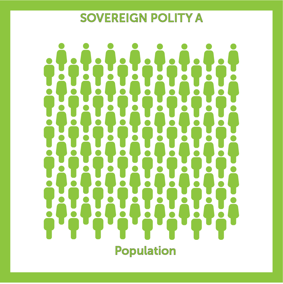 A sovereign polity has legitimate jurisdiction and authority over a population.
