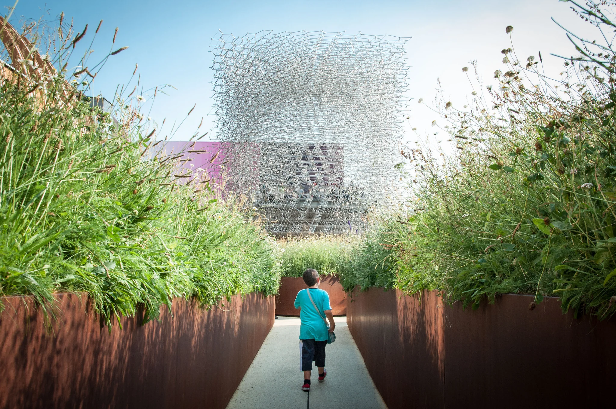 A young visitor walks towards the main building of the UK Pavilion at Expo 2015 Milan. Photo: © USC Center on Public Diplomacy, 2015. (CC BY-NC-ND 2.0)